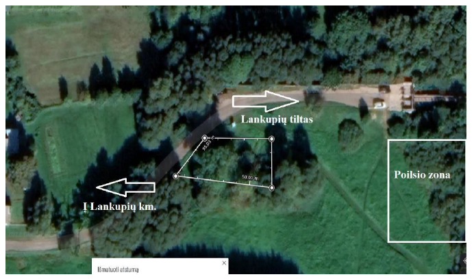 Poilsio zoną siūlome įrengti Lankupių kaimo pusėje, šalia Minijos upės. Ši vieta parinkta, nes čia jau įrengta nedidelė aikštelė vietiniams gyventojams, kurioje yra persirengimo kabina, stalas su suolu bei gultas. Poilsio zonoje reikia įrenti keletą atskirų pasisėdėjimo vietų, tam puikiai tikrų 2 – 3 staliukai su suolais, šalia jų įrengti atliekų surinkimo talpas. Taip pat poilsio zonoje reikia įrenti dviračių saugojimo vietą, kad atvykę dviratininkai ramiai galėtų prisirakinti savo dviračius ir pasivaikščioti.